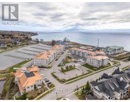 *Marina View* Step inside this thoughtfully designed condo and you're immediately welcomed by a bright, open living space that feels both comfortable and refined. The living room offers plenty of space to relax and flows seamlessly into the kitchen, where quartz countertops, rich cabinetry, and the crystal light fixture create a beautiful focal point. Just off the main hallway, the den/foyer offers a versatile bonus area, while the bedroom features its own 4-piece ensuite, a remote-controlled ceiling fan, and serene views. Every window in the unit looks out over the marina, giving you stunning sightlines of Lake Ontario and Bond Head right from your sofa. The balcony becomes a peaceful retreat-perfect for morning coffee, fresh air, and watching the boats come and go. With two full bathrooms, in-suite laundry, two parking spots, and a locker, the layout is designed for both comfort and convenience. Beyond the unit, the Port of Newcastle community shines with its friendly atmosphere, secured entrances, and exceptionally maintained buildings and grounds. Residents love the lakeshore walking trails, Wilmot Creek conservation paths, and the pet-friendly neighbourhood-ideal for anyone who enjoys nature, tranquillity, and a true sense of pride of ownership throughout the community. Maintenance Fees include a membership to the Admiral's Club whose amenities include: Oversized indoor pool, Lounge, Games room, Clubhouse facility, Preferred pricing on dining and marina services, Casual dining, Fishing, Marina, Boat slips, Hiking trails, Member beach area, and a Children's playground. Located just a few minutes from the 401 (id:47351)