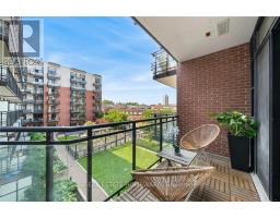 Set in the heart of Leslieville, Showcase Lofts puts you right where you want to be-steps to Queen Street East, local coffee spots, indie shops, neighbourhood favourites, and easy TTC access. Whether you're heading downtown or out of the city, the DVP and Gardiner are close at hand.This one-bedroom condo offers 635 sq. ft. of smart, well-finished living space with a 40 sq. ft. balcony. The open layout features a reclaimed-brick accent wall, floor-to-ceiling windows, high ceilings, wide-plank hardwood floors, and a balcony overlooking the courtyard-perfect for a quiet coffee or evening wind-down.The kitchen blends style and function with woodgrain cabinetry, under-cabinet lighting, quartz countertops, built-in wine storage, an island with seating, pot lights, and stainless steel appliances. In-suite laundry with a stacked washer and dryer keeps things easy.The bedroom is spacious, with a walk-in closet and its own walkout to the balcony. The four-piece bathroom is clean and modern, finished with quartz counters and a deep soaker tub with shower.One parking space and one locker are included for ultimate convenience. Residents also have access to concierge service, a fully equipped gym, media and party rooms, guest suites, and a ground-level patio. (id:47351)