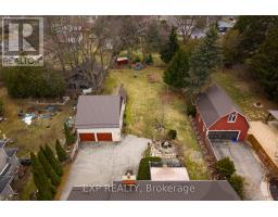 308 John Street South, Aylmer offers a rare blend of in-town convenience, multi-generational flexibility, and exceptional outdoor utility on a deep lot that feels far more private than its central location suggests. This brick bungalow features an attached garage, a separate entrance to the basement, and an impressive detached shop with parking for two vehicles, remote openers, workshop space, and a large upper loft for added storage and future-use potential. Inside, the main level offers a bright, welcoming layout with spacious principal rooms, warm-toned laminate flooring, large front-facing windows, and an open-concept living and dining area anchored by a full brick fireplace. The kitchen provides extensive upper and lower cabinetry, generous counter space, and a large eat-in area with direct access to the covered rear deck with awning, creating an easy extension of the living space outdoors. The main level bedrooms are well-sized, the bathroom is clean and practical with a large vanity and good storage, and storage is a consistent strength throughout the home. The basement adds valuable flexibility with a spacious rec room, second kitchenette, additional bedroom, full bathroom, and separate entrance, making it well suited for extended family, guests, or multi-generational living. Outside, the property continues to stand out with ample parking at the front, side, and rear, a deep backyard with mature trees, expansive green space, garden areas, a bubbling rock water feature, and a fire pit area that together create a peaceful, country-like feel despite the in-town setting. Additional updates and features include a metal roof approximately 2022, furnace and central air conditioning from 2004, an upgraded electrical panel in 2004, and a dryer replaced in 2023. (id:47351)