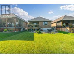 $65 MonthlyLuxury Living Meets Golf Course Ambiance ~ Welcome to Unit 31 at 159 Collins Way, Strathroy. This show-stopping bungalow condo redefines turnkey living with designer finishes, functional upgrades, and one of the most desirable locations - backing on Caradoc Sands Golf Course. Whether you're settling your family outside the hustle of the city or looking for the perfect retreat, this home offers a blend of luxury, lifestyle, and low-maintenance ease. From the moment you arrive you'll be welcomed by an open-concept layout, hardwood flooring throughout the main floor and solid oak stairs, lots of natural light and soaring ceilings. The stainless professional style kitchen is a standout, featuring contrast granite countertops, full-height backsplash, a double gas stove/oven & expansive range hood, placed around a spacious waterfall island perfect for entertaining or daily living. Enjoy the oversized custom glass french doors that lead from the kitchen to overlook your backyard with lush green & water views. The main level includes a serene primary suite with a walk-in closet and a luxurious ensuite. Along with a second bedroom/office & full 4pc bath and laundry closet for everyday convenience. Downstairs, the fully finished lower level adds even more living space with a massive rec room, third and fourth bedroom, library or office and a stylish 3pc bath perfect for overnight guests, teens, or extended family with walkup to the garage and roughed in for a full kitchen. Step outside to relax or entertain on the covered deck while enjoying the peaceful views of the golf course, ducks and cranes with a low-maintenance lifestyle this community offers. Additional features: All major appliances included and no rental items, freshly painted, vacant land condo fees of only $65/month, and just minutes to Strathroy's best amenities. This home isn't just a move - it's an upgrade. Don't miss your chance to secure one of the most thoughtfully finished units in this coveted community! (id:47351)