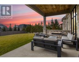 Welcome to 31 Reid Court, a stunning luxury bungalow located on a 1/2 acre lot in the prestigious Heritage Lake gated community. This residence offers an exceptional blend of elegance, comfort and masterful craftsmanship. The main level features soaring twelve-foot ceilings and an open-concept kitchen, living and dining space filled with natural light. The chef's kitchen is equipped with a Sub-Zero paneled fridge and freezer, a Thermador paneled dishwasher, an industrial Thermador stove with a custom range hood, a large island with seating and storage, and a paneled Marvel beverage fridge for added convenience. The living room is centered around a striking marble fireplace, and upgraded designer lighting throughout enhances the home's sophisticated ambiance. The primary suite serves as a private retreat, offering a generous walk-in closet and a spa-inspired ensuite with double sinks, a deep soaker tub and elegant marble finishes. Heated floors extend through the primary ensuite, the second main-floor bathroom and the laundry room. Two additional spacious bedrooms complete the main level. The fully finished basement impresses with ten-foot ceilings and features a dedicated home theatre with a Sony projector and an approximately one-hundred-fifty-inch screen, an expansive rec and living area with a fireplace, and three additional large bedrooms. Additional highlights include that the home is Net Zero ready, has a Sonos sound system with Triad speakers on the main level and wiring for future expansion, a 2020 Generac generator and home security system. Outside, a spacious backyard with generous greenspace and a covered outdoor living area with a built-in fireplace creates the perfect setting for entertaining. Paired with quick access to surrounding conveniences, this home delivers effortless luxury in a peaceful, sought-after location. (id:47351)