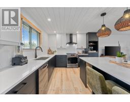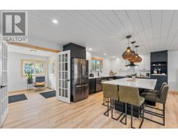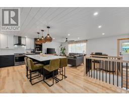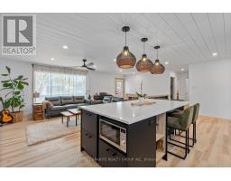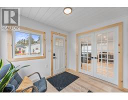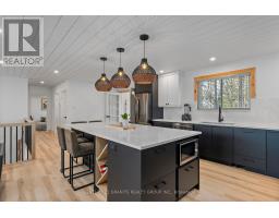 Modern Comfort Meets Scandinavian Warmth - in the Heart of Cardiff, Step inside this freshly renovated home that perfectly blends modern design with Scandinavian charm. The open-concept layout feels bright, warm, and cohesive, featuring Lifeproof "Savannah Islands" flooring, shiplap ceilings, and natural pine accents throughout. At the heart of the home is a showpiece kitchen - a massive quartz island that seats six, premium black stainless LG appliances, and custom cabinetry with thoughtful details like a coffee station and recessed microwave nook. Enjoy a spacious four-season entry / mudroom / sunroom - the ideal spot for morning coffee, plant lovers, or a cozy reading nook. The living area features a custom ash staircase, oversized window with remote blind, and walnut ceiling fan - tying together warmth and elegance. The spa-inspired bathroom includes a deep soaker tub, floating vanity, and rainfall shower, while both bedrooms offer solid-core doors, custom window coverings, and walnut ceiling fans. Enjoy a centrally located laundry area featuring a premium LG ThinQ washer-dryer tower for easy main-floor access. Downstairs, the bright, dry basement offers flexible space for a home office, gym, and storage, plus a second laundry setup and extra fridge - practical for real life. Outside, you'll find a fully fenced backyard, fire pit area, and a new front deck with modern railing. A lockable 11'7' Keter shed and ample parking complete the package. Every inch of this home reflects quality, style, and comfort - all in the welcoming community of Cardiff, minutes from Silent Lake, Paudash Beach, trails for every season, and everyday amenities. (id:47351)