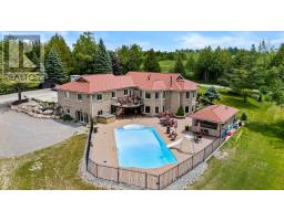 Welcome to this stunning custom-built home in the heart of Ennismore! Set amidst extensive, professionally designed landscaping, this property offers a private oasis for relaxation and entertaining. Step outside to your own resort-style retreat featuring a large, fully gated inground pool, hot tub, and a charming pool house--ideal for summer gatherings or quiet evenings under the stars. The detached three-car garage provides ample space for vehicles, toys, and hobbies, while multiple RV hookups make hosting guests a breeze. Inside, the spacious layout boasts two separate family living areas, offering flexibility for both intimate family time and larger get-togethers. Fitness enthusiasts will appreciate the dedicated home gym, while the basement comes roughed-in for a granny suite with direct walkout access to the backyard--perfect for multi-generational living or potential income. With an abundance of parking and storage throughout, this home is designed to accommodate your every need. Whether you're seeking a peaceful sanctuary, an entertainers paradise or a space to work from home, this exceptional property truly has it all. (id:47351)