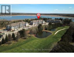 Welcome to Marlwood Estates, a quiet, established community in Wasaga Beach located beside Marlwood Golf & Country Club. This Greenbrier floor plan condo offers approximately 825 sq ft of finished living space and features a covered balcony with views of the private tree line, Marl Lake and the 8th hole of the golf course-a perfect place to relax and enjoy the peaceful surroundings. The 1 bedroom, 1 bathroom unit features an open concept kitchen with granite countertops, breakfast bar, and stainless steel fridge, stove, and dishwasher. A convenient in-suite laundry area with stackable washer/dryer and additional storage adds to the functionality of the space .Ideally situated at the end of a quiet loop with no through traffic, this unit also includes two deeded parking spaces. Located close to east-end shopping, restaurants, the new Wasaga Beach arena and library and the main end beach area. Floor Plan available under the 'Documents' tab. (id:47351)