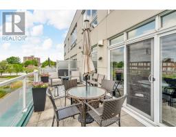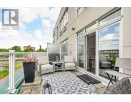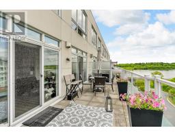 Experience elevated living in this two-level, loft-style condo located in the historic Edison Building within Cornwalls sought-after Cotton Mill District. This fully upgraded 2-bed, 3-bath condo offers west-facing floor-to-ceiling windows and a private 27 x 10 terrace overlooking the St. Lawrence River. Showcasing modern finishes throughout, the main floor features wide-plank laminate flooring, porcelain tile in high-traffic areas, and a refreshed kitchen with quartz countertops, stainless steel appliances, and updated lighting. The primary offers a walk-in closet and a luxurious rain shower system. Bonus features include a powder room with a floating quartz vanity, custom shower glass doors in the guest ensuite, and upper-level laundry with high-efficiency appliances and storage. Enjoy the convenience of underground heated parking with additional storage, indoor car wash bay, and secure access with fob entry and surveillance throughout. The condo fee includes snow removal, lawn maintenance, garage and window cleaning, and more. Steps from the waterfront, shops, restaurants, yoga studio, and medical services, this is your opportunity for stylish, maintenance-free living in a vibrant riverfront community. Water $850.88 Gas $291.82 Electric $708.97 Sq.FT 1324. (id:47351)