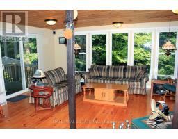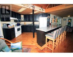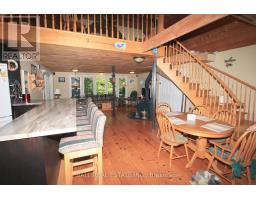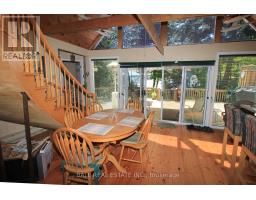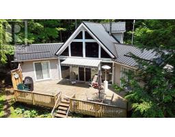 Welcome to Limerick Lake! This impressive chain of five waterways offers clean, clear water, miles and miles of boating, sailing and great fishing. This gorgeous, chalet style cottage is situated in a private spot on a mostly level lot with 100 feet of clean, rocky, west facing shoreline where you'll tie your boat and tan on the series of U-shaped docks. Many fine features include a vaulted, tongue & groove ceiling, large, west facing windows, a bright, beautiful kitchen with lots of cupboards and counters and a breakfast bar, great for entertaining. The dining area looks out to the great 35X16 foot deck, and the spacious living room has a cozy wood stove. There are two main floor bedrooms, with doors to the deck, main floor bathroom and a main floor laundry off the back porch. Up the attractive, curved staircase you'll find an 18X20 foot loft sleeping area with built-in dressers and two queen beds! Many other features include, pine floors throughout, steel roof, vinyl siding, and 4 storage sheds. A heat pump provides heating and cooling, UV water system and comes turn-key with all appliances, furniture, a fully equipped kitchen, beds & bedding and more. Access to this cottage is just a 10-15 minute boat ride from the full service marina with docking, parking , gas and supplies. The marina is 30 minutes from Bancroft and 45 minutes from the 401 at Belleville. (id:47351)