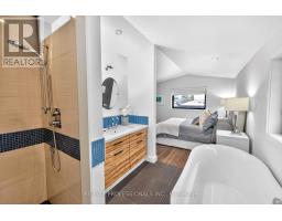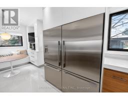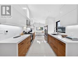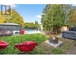 Welcome to this beautifully rebuilt mid-century style 4-level sde split offering 3+1 spacious bedrooms and exceptional design throughout. Flooded with natural light from large windows, the home showcases a stunning custom Perola kitchen with full - height cabinetry, quartz counters with waterfall edges, intergrated dishwasher and garbage system, double fridge, and gas range, plus a dining area featuring built-in seating and cabinetry. The expansive living room impresses with engineered hardwood floors, soaring ceilings, pot lights, a custom gas fireplace, and a sliding door walkout to the back deck and garden. The upper-level primary suite is a true retreat with a luxurious 4-piece spa-like ensuite featuring a soaker tub and separate shower, an open-concept layout designed for optional sliding doors, and a wall - to - wall custom closet system with built-in storage and lighting. A second bedroom overlooks the front yard with a large picture window and double closet with built-ins. The lower level offers two additional rooms ideal for a thrid bedroom and office or fourth bedroom, while a remarkable underpinning renovation transformed the origional crawl space into a full additional level with a generous recreation room finished in engineered hardwood-perfect for a gym, media room, or extra living space - plus a finished laundry room with quartz counters, laundry sink, cabinetry, and rough-in for a 3-piece bath. Set on a stunning 60 x 120 ft corner lot, the backyard is a private oasis complete with a gorgeous pool, hot tub, gazebo, interlock patios, and gas BBQ hookup. Move - in ready and impeccably finished, this exceptional home is close to shopping, restaurants, transit, schools, parks, highways, and the airport. (id:47351)