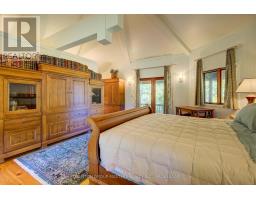 This stunning fusion of architectural brilliance and natural beauty will appeal to the discerning buyer who wishes to have a home like no other. No "cookie cutter" mass production here. Just design, craftsmanship and a whole lot of "Wow!" factor. The package is situated on about 6 acres, and it incorporates the home, the boathouse, outbuildings, and the 4-bay detached garage + workshop. It is a true unicorn. Built and designed with timeless materials in the "Mid-century Modern" aesthetic, this one-of-a-kind home makes a significant nod to the works of Frank Lloyd Wright, with its soaring great room focused on a double-sided fireplace that invites gatherings either grand or intimate depending on your mood. The 360-degree windows in the great room bring the private park like setting into your living space, allowing you to take full advantage of the selective plantings carefully arranged around the private and expansive grounds. The home celebrates its incredible natural setting by being designed of a piece with its environment. The cohesion between land and property create a truly tranquil experience. In addition to the home, the boathouse and waterfront area is an oasis of its own. Easily accessed via the driveway or a stroll down the lawns, it is safe for water adventurers young and old. No steps, no muss, no fuss, no bother. The boathouse features 2 slips with good water depth, and the larger slip has a boat lift. The boathouse also has a 2pc bath for convenience when spending long summer days down by the water. Above the wet slips is approximately 1000 square feet of finished space that feels as though you are in the captain's cabin on a ship. Water views out every window! The dock is concrete, and at around 14ft wide is a great spot for a few Adirondack chairs to take in the stunning sunsets that fill the bay. This amazing package is priced well below current build costs and represents tremendous value. It truly must be seen to be appreciated. (id:47351)