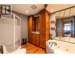 Lakefront property views and direct water access! This unique property is fully equipped for enjoying life on the water, featuring a 54 ft roll-in dock, jet ski lift, sandy beach area, and a new break wall.Outdoor spaces are designed for entertaining with a spacious deck, covered hot tub room, and a large cement pad at the water’s edge—perfect for hosting family and friends. A standout feature is the unfinished “bunker” tucked into the landscape with electrical and water views, offering endless potential for a private retreat, studio, or entertaining space.Inside, the home offers 3 bedrooms, each with its own private bathroom. The main floor primary suite includes a walk-in closet and 4-piece ensuite. The upper level has been previously used as an Airbnb, complete with its own kitchenette, sitting area, and a full wall of windows overlooking the water. The upstairs bedroom features a striking 3-sided fireplace shared between the bedroom, bathroom, and sitting area. There is also an additional unfinished bedroom with a roughed-in ensuite, providing room to expand.Additional features include a 2-car garage with bar and bathroom, two central air units, and multiple indoor and outdoor living areas designed to maximize the waterfront lifestyle.A rare opportunity offering versatility, income potential, and incredible views. (id:47351)