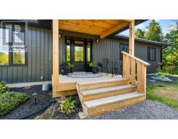 Experience stunning, convenient main-floor living in this beautiful 3-bedroom, 2-bathroom home, featuring a triple-car heated garage and access to a private, owned community waterfront. Set on a serene 1.8-acre lot, this property offers both privacy and charm. A welcoming covered front porch leads into a spacious foyer with a double closet. The bright, open-concept main living area boasts vaulted ceilings, luxury vinyl plank flooring, and recessed lighting. The gourmet kitchen showcases an oversized island, tall cabinetry, quartz countertops, pot drawers, and stylish pendant lights. The family-sized dining area features an impressive wall-to-wall pantry and opens onto an oversized covered deck-perfect for year-round enjoyment. The adjoining great room offers a large picture window and walkout to the yard. All three bedrooms are generously sized, with the primary suite featuring a walkout to the deck, a 3-piece ensuite with glass shower, a walk-in closet, and convenient laundry access. The 30' x 30' triple-car garage comes equipped with radiant in-floor heating. Entertain with ease on the expansive 50' x 12' covered deck, complete with pot lights and a propane BBQ hookup. Just steps away, enjoy your private community beach on Crowe River-perfect for fishing, swimming, paddleboarding, and kayaking. Additional quality features include ICF construction for a strong, energy-efficient foundation, a massive crawl space with concrete floors and walls for ample storage, a reverse osmosis water filter at the kitchen tap, UV water filtration system, a 195' drilled well, and parking for up to 12 vehicles. (id:47351)