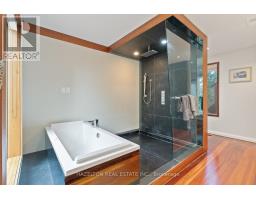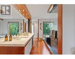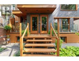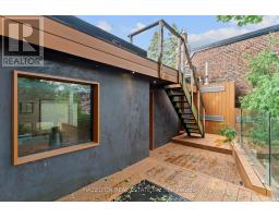 Set in the heart of Toronto's desirable Regal Heights neighbourhood, this beautifully designed duplex that can be converted to a single-family home offers a modern sanctuary where architecture and nature meet in perfect harmony.Framed by mature trees and curated landscaping, the home feels like a private retreat in the city. The exterior is finished with unique porcelain tile, while the balconies are enclosed by sleek glass railings, and the floors throughout are crafted from exotic tiger wood. Thoughtful wood accents soften the contemporary design, creating a seamless connection between indoors and nature. Each suite is unique, offering flexible living options. The upper primary suite is filled with natural light, featuring floor-to-ceiling windows, six private walkouts, dual skylights, and peaceful treetop views. The top-floor bedroom is a true sanctuary, with spa-inspired finishes and access to an unfinished rooftop terrace awaiting your vision.The main-floor suite includes two bedrooms, a newly updated kitchen with brand-new appliances, and a private balcony for morning coffee. The lower level offers a separate basement suite, also suitable as an in-law suite, with its own entrance, kitchenette, high ceilings, and natural light, ideal for extended family, guests, or rental income. A turnkey opportunity offering flexibility, comfort, and lasting value, this home is perfectly suited for multi-generational living or income generation. Steps to cafés, restaurants, and shops, with easy access to the Annex, Corso Italia, Ossington, parks, schools, and community amenities.The sellers do not represent or warrant retrofit compliance with respect to the multiple residential units. (id:47351)