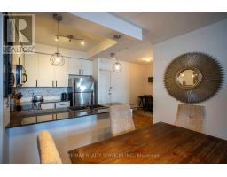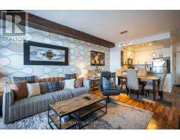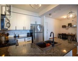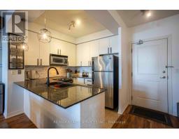 Welcome to The Dalesford. This beautifully fully furnished 1 bedroom plus large den, 1 bathroom condo offers approximately 745 square feet of thoughtfully designed living space with an east-facing terrace in the highly sought-after Stonegate-Queensway neighbourhood.The bright, open-concept living and dining area is filled with natural light and features warm flooring throughout. The fully equipped kitchen offers all the bells and whistles, including granite countertops, a breakfast bar, quality appliances, and excellent storage, making it ideal for both everyday living and entertaining.Step out from the living area to the private terrace featuring a gas BBQ hookup, perfect for outdoor dining, relaxing, or hosting guests while enjoying treetop and skyline views.The primary bedroom is generously sized with a large window and ample closet space. The oversized den is highly versatile and can function as a home office, guest room, or additional sleeping area depending on the tenant's needs.Additional features include in-suite laundry, one parking space, one locker, and furnishings throughout, offering a truly turnkey, move-in-ready opportunity.Conveniently located steps to parks, shops, cafes, public transit, and with easy access to major highways, this home offers comfort, convenience, and connectivity in a vibrant Etobicoke community.Ideal for professionals or tenants seeking a fully furnished, well-appointed condo in a well-managed building. (id:47351)