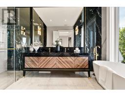 Welcome to 321 Morden Rd, a brand-new French Chateau-inspired estate that seamlessly blends timeless elegance with modern luxury. This custom-built residence offers almost 6,000 sq ft. of meticulously designed living space across three levels, featuring premium finishes, soaring ceilings, and an abundance of natural light. The exterior architecture impresses with grand symmetry, tall columns, arched windows, detailed stonework, and a striking double-door glass entry. Inside, every detail has been thoughtfully crafted for both sophisticated entertaining and everyday comfort. The main floor boasts 23-foot ceilings in the living and great rooms, with floor-to-ceiling windows that flood the space with natural light. Tray ceilings with integrated LED cove lighting, recessed spotlights, and in-ceiling speakers create a modern ambiance, while open-to-above areas are highlighted by stunning light fixtures. Premium granite and hardwood flooring flow throughout, with the main lobby having marble flooring, leading to the kitchen complete with built-in appliances, quartz countertops, an oversized island, and custom cabinetry. A dedicated home office with dramatic windows completes this level. Upstairs, the primary suite features a spa-like ensuite with a freestanding tub, rainfall shower, double vanity, and a custom walk-in closet. Three additional bedrooms each offer their own ensuite and custom storage. The finished lower level includes a spacious bedroom, full bath, living area, second kitchen, and a walk-up to the backyard - perfect for multi-generational living. This home offers 4+1 bedrooms, 7 bathrooms, a 2.5-car garage, extended driveway, 10-foot basement ceilings, and a stone patio with lush green space and an outdoor fireplace. The home also has a permit to build a 10X31 feet pool! Ideally located just minutes from Hwy 403, schools, shops, and restaurants, 321 Morden Road delivers the perfect balance of elegance, convenience, and lifestyle. (id:47351)