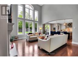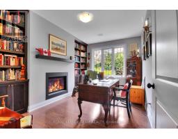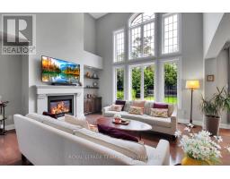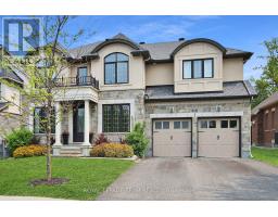 Exceptional executive home featuring 4 bedrooms and 5 bathrooms, located in the highly desirable Mahogany community in Manotick, with a serene backdrop of trees. This residence boasts a thoughtful layout and high-quality finishes, making it perfect for entertaining! The impressive family room, with soaring 17-foot ceilings and a wall of windows offering views of nature, is highlighted by a cozy fireplace. The stunning gourmet kitchen is sure to impress any chef! No expense has been spared in this luxury home, with an L-shaped island that includes a breakfast bar with seating, a 48" gas range, quartz countertops adorned with a stylish backsplash, custom millwork, a walk-in pantry, and ceiling-height cabinets complete with pots and pans drawers, along with a coffee bar. The foyer is elegantly flanked by both the living and dining rooms, featuring a convenient Butler's pantry/Servery offering upper and lower cabinetry, quartz counter, wine and beverage fridge. A main floor home office/den with a gas fireplace adds both functionality and charm. Throughout the main and upper levels, you will find beautiful hardwood flooring and a striking open hardwood staircase that connects the upper and lower levels. Upstairs, there are four spacious bedrooms, each equipped with walk-in closets. Two of the bedrooms share a Jack and Jill bathroom, while the third bedroom offers a four-piece ensuite bath with quartz countertop & vessel sink. The primary retreat features a sitting area, a dual-sided gas fireplace enjoyed by the bedroom and a generous five-piece ensuite with dual sinks, a custom shower, and a separate tub and watercloset. The professionally finished basement includes a gorgeous Home Theatre room, bar, lounge area, recreation room with built-in fireplace, gym, and ample storage. The expansive rear yard is complete with an entertaining-sized deck, which is perfect for outdoor enjoyment. Prepare to fall in love! (id:47351)