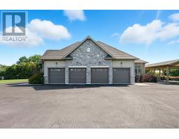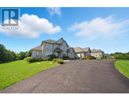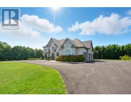 Welcome to estate living in Rural Pickering, where privacy, sophistication, and convenience meet! Tucked away on nearly 2 acres surrounded by ravines and mature trees, this executive retreat offers a rare lifestyle just minutes from the city. From the gated circular drive to the landscaped grounds, every detail speaks of refined living. Inside, over 5,000 sq ft unfolds with a seamless blend of elegance and comfort: a grand main-floor primary suite with spa-inspired ensuite, a chefs kitchen with granite counters, premium appliances, walk-in pantry and breakfast nook, plus formal dining and living rooms accented with custom millwork and soaring ceilings! Designed for both everyday living and unforgettable entertaining, the home features a four-season sunroom with heated floors, a custom theatre, built-in surround sound, and a finished basement with recreation and games rooms. Outdoors, evenings come alive under the pergola with built-in BBQs and oven - the perfect setting for gatherings that linger into the night. Practical luxury completes the experience with a heated 4-car garage, integrated security with cameras, reverse osmosis water system, and countless smart upgrades throughout! More than a home, this is a private retreat, a gathering place, and a statement of lifestyle. Welcome to estate living in Pickering! (id:47351)
