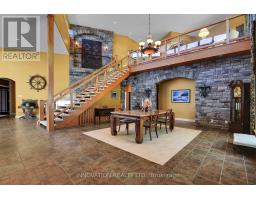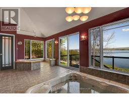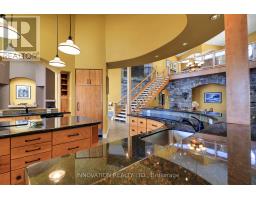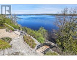 EXCEPTIONAL RIVERFRONT PROPERTY Perched safely above the Ottawa River this substantial highly customized home is designed to capture breathtaking views with private river access. Very private 1.59 acre property with 200ft riverfront. 180 degree views up & down river with fabulous city skyline vistas to the east. 4960 sqft of living space above grade plus over 2000 sqft finished space in the walkout lower level. Unassuming entry loft level opens to large open concept space as you descend the stairs giving an indication to the scale of this home. Artisan built natural stonewalls respect the rocky terrain. Customized at every corner & curve each space takes advantage of walls of windows to feature views of river & Gatineau Hills and the customized gardens all around the property. Great Rm has lofty ceilings w/skylights, fireplace, and circular staircase to the Recreation Room below. Kitchen is central to Dining & Family Rm. This well equipped Kitchen is perfect for entertaining. Very large Dining Room is accented by natural stone walls and arches. Family Room next to the Kitchen offers lovely garden views with afternoon sun & a fireplace. Spa space offers hot tub, sauna, rain shower + bathroom. Primary Bedroom suite has it all: corner windows w/views of the city skyline, deck, sunken Library, 5pc Ensuite & spacious Walk-in. 2 main level secondary Bedrooms each have Walk-ins, 3 piece Ensuites & loft spaces accessed by spiral stairs. Finished walkout lower level provides for a 2nd Family Room with a bar, Recreation Room, Media Room, 2 additional Bedrooms, a 3 piece Bathroom, and another Office. There is also a workshop, two utility rooms, and several storage areas. Extensive landscaping w/rock gardens, Trex decks, stairs to rocky shore & dock. Rare offering. 4 bay drive through garage. Generac generator for automatic transfer to the whole home if Hydro goes out. Located in Rural Kanata North along millionaires row, just minutes to many amenities. (id:47351)