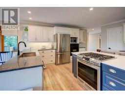 Stunning Waterfront Retreat with Sunset Views on Long Reach - Greater Napanee. Welcome to your dream home on Long Reach, offering panoramic views of Prince Edward County. This luxurious retreat features two main-floor bedrooms, each with private ensuites and balconies ideal for morning coffee or sunset watching. The open-concept layout blends a stylish kitchen with a large centre island, a dining area, and a wall of windows that flood the space with natural light. Garden doors lead to a balcony and screened-in porch, perfect for alfresco dining while overlooking professionally landscaped grounds. The walk-out basement includes two more bedrooms, a full bath with standalone tub and custom shower, and a great room with a cozy gas fireplace. Step outside to enjoy a hot tub, outdoor kitchen with bar fridge, and a pergola dining area with flat rock patio reminiscent, of Tuscany. At the waters edge, find a large armour stone area with gradual stairs to a sitting area, an all-weather bar fridge, and concrete counter. Two cantilever docks, a rock wall with built-in seating, and a waterside dining space provide endless opportunities for entertaining. With three watercraft lifts, you're ready for any aquatic adventure. Additional features include an attached two-car garage, a marine garage in the basement, and a two-bay drive shed for all your gear. Nestled on over 4 private acres, this property offers the perfect blend of luxury, recreation, and natural beauty ideal for birding, fishing, gardening, and waterfront living. Pre home inspection is available. (id:47351)