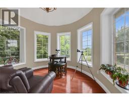 Discover refined living and peaceful countryside charm in this meticulously crafted custom-built retreat, located just minutes from major highways and everyday amenities. Set on 13.83 picturesque acres, this exceptional property offers privacy, beauty, and convenience in one remarkable package. Inside, enjoy elegant, carpet-free living with rich hardwood, marble, and porcelain flooring throughout—timeless, stylish, and easy to maintain. The sunken living room invites relaxation with a cozy gas fireplace and expansive windows showcasing serene views of the surrounding landscape. The spacious primary suite is a private sanctuary, complete with its own gas fireplace, a spa-inspired 6-piece ensuite, oversized walk-in closet, and charming reading room. Step out from the suite or main living area onto the concrete patio with gas BBQ hookup—perfect for entertaining or enjoying quiet evenings by the fire pit in the tree-lined yard. The gourmet kitchen impresses with custom cherry cabinetry, granite countertops, and a large center island designed for gatherings and culinary creativity. A walk-out lower level offers incredible versatility, featuring a rough-in for a future bathroom and endless potential for additional living or entertainment space. Constructed with Insulated Concrete Forms (ICF), this home provides superior durability, comfort, and energy efficiency—offering 50–70% energy savings compared to traditional wood framing. Durable 45-year shingles add long-term value and peace of mind. Approximately 8 acres are currently leased to a tenant farmer, presenting added income potential. This one-of-a-kind estate beautifully blends luxury craftsmanship, modern efficiency, and natural surroundings—an exceptional property that must be seen to be fully appreciated. (id:47351)