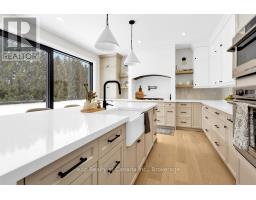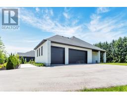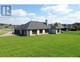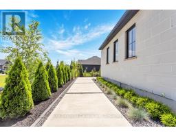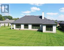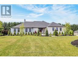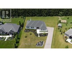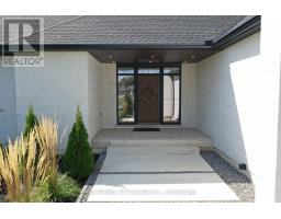 This luxurious 3,000+ square foot custom-built bungalow sits on a beautifully landscaped 1-acre lot in an exclusive neighborhood, offering a perfect balance of privacy, tranquility, and curb appeal while blending modern design with elegant finishes. Upon entering, you're welcomed by a bright, open-concept layout, accentuated by large windows that fill the home with natural light and 9' high ceilings that create an airy, expansive feel. The heart of the home is the high-end kitchen, complete with top-of-the-line appliances, custom cabinetry, and a large island perfect for meal preparation or casual dining. This space seamlessly flows into the dining and living areas, making it ideal for entertaining or family gatherings. The master suite is a private retreat, featuring large windows with serene views, a spa-like ensuite with a soaking tub, luxurious shower, dual vanities, and a spacious walk-in closet. Two additional bedrooms share a full modern bathroom, while a stylish powder room adds convenience for guests. The home also features a large laundry/mudroom, designed for practicality and organization, with built-in storage and access to the three-car garage. The garage is perfect for car enthusiasts or anyone needing extra storage, accommodating larger vehicles or a workshop space. Outside, the professionally landscaped grounds create a peaceful, private setting. Whether relaxing on the patio, hosting outdoor gatherings, or enjoying the serene views, the outdoor space complements the home's elegant design. With its blend of luxurious amenities, custom craftsmanship, and peaceful setting, this modern bungalow offers an unparalleled living experience in one of the area's most exclusive communities. Every aspect of the home has been designed to cater to both the aesthetic and practical needs of modern living, making it a rare find for discerning buyers. (id:47351)