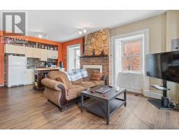 A rare chance to own a character-filled mixed-use property in the heart of downtown Brockville, offering immediate residential income with vacant space ready for your vision. The main-floor unit features exposed stone and brick accents, a fireplace, and a two-piece bathroom, creating a warm and distinctive atmosphere ideal for professional services, boutique retail, studio space, or office use. The unit is currently connected to the adjoining unit at 35 Perth Street, providing flexibility for an expanded footprint if purchased together, or it can be closed off and operated independently. The upper floor is a tenanted, multi-level residential apartment, offering stable rental income. The unit includes a functional layout spread across two levels, with defined living areas, kitchen, bathroom, and bedroom spaces. The property also includes three parking spaces located in the lot behind the building, with rear access via Church Street. The laneway beside the building is owned, adding valuable access, servicing, and operational flexibility. An important feature in a downtown core setting. Located steps from shops, restaurants, services, and waterfront amenities, this property benefits from strong pedestrian exposure while maintaining the charm and permanence of Brockville's historic core. (id:47351)