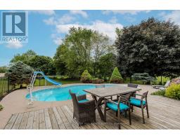 Welcome to the ultimate blend of comfort and serenity in the heart of Caledonia. This stunning country home offers 3965sf of total living space, combining timeless charm with functional design for peak family lifestyle. Situated on a quiet, dead-end street steps from the Grand River and mins from amenities, this property delivers the best of both peaceful countryside surroundings with daily convenience. Set back from the road on a professionally landscaped large private lot, the curb appeal is undeniable. A 200ft asphalt driveway leads to a triple car garage with room for 68 vehicles, and an extra-wide front porch invites you in. Inside, find a thoughtfully designed main floor featuring laminate flooring throughout. The living room is bathed in light due to oversized windows, while the dining room provides ample space for meals and entertaining. The heart of the home is a farmhouse style eat-in kitchen with a large island with breakfast bar, SS appliances, tile backsplash, coffee/wine bar, and seamless flow into the family room with gas fireplace, wainscoting, and French doors to the backyard. A convenient entrance from the back deck leads to a laundry room and full 3pc bath perfect for pool days! Upstairs, a window seat nook adds character and charm. The expansive primary suite features a walk-in closet and a 4pc ensuite with extra-large jacuzzi tub. 3 additional bedrooms2 with walk-in closets and Deacons benches w/ storage and a 4pc bathroom complete this level. The partially finished basement offers in-law potential with a separate entrance, large sitting room and an additional versatile space ideal for an office, games room, or guest bedroom. Step outside to your very own entertainers dream yard, complete with wood deck, stamped concrete patio, tons of green space, and a fully fenced in-ground pool with slide perfect for summer fun with family and friends. A rare opportunity to enjoy a peaceful rural setting without sacrificing space, style, or convenience! (id:47351)