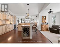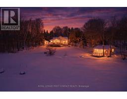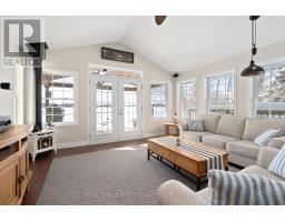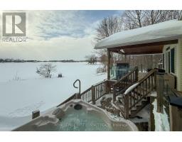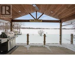 Exceptional point offering on the tranquil shores of Little Lake, custom-built year-round waterfront home is perfectly positioned on a quiet municipal road with expansive southwest exposure & unforgettable sunsets. Set on a level 0.81 acres with 218 ft of private shoreline, offers direct access to the Trent-Severn Waterway, connecting through Gloucester Pool to Georgian Bay opening the door to endless boating, fishing, and cruising. Offering 3,500 sqft with 4 bdrms, 3 baths, a gourmet kitchen and a lower-level kitchenette, along with two laundry areas, providing excellent flexibility for family living, entertaining, or extended-stay guests or multi-generational living. The main level is designed to maximize lake views and everyday comfort, offering an inviting open-concept layout flooded with natural light from oversized windows throughout. The living space flows seamlessly between cozy gathering areas with fireplaces, a sitting room, and a dedicated dining area - ideal for both entertaining and relaxed evenings by the fire. Anchoring the level is a custom gourmet kitchen, recently renovated and appointed with granite countertops, premium appliances, and abundant cabinetry. A serene primary suite with ensuite. Multiple walk outs extend the living space to a wrap-around covered porch, providing shaded outdoor enjoyment and exceptional waterfront views. The fully finished lower level is exceptionally well laid out, featuring a roomy kitchenette with dining area, a large recreation and family room, dedicated office space, generous bedrooms, a full walk-up separate entrance. Outdoors, enjoy a private dock, a peaceful bunkie with its own deck for additional sleeping space, and a spacious triple heat garage ideal for vehicles, workshop , or seasonal storage. Conveniently located minutes to marinas, LCBO, general store, Rawley Resort and Inn at Christie's Mill, with nearby skiing and golf & snowmobiling . Approx 35 minutes to Barrie with easy access to Highway 400. (id:47351)