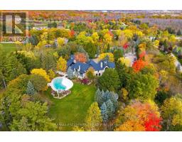 An extraordinary custom-built Country Estate set on 10.5 acres of picturesque, park like grounds, offering unmatched privacy and bespoke amenities. This Masterfully Crafted residence features soaring ceilings, White Oak Herringbone and wide-plank flooring, and exceptional Millwork throughout. A dramatic two-storey foyer opens to elegant principal rooms with 16-foot windows, French doors and panoramic views of rolling hills, a private pond and the Niagara Escarpment.The grand chef's kitchen is designed for entertaining, complete with quartzite countertops, premium Sub-Zero, Wolf and Miele appliances, a walk-in pantry, servery and custom wine storage. The home offers six bedrooms, including a luxurious Primary retreat with Cathedral ceilings, gas fireplace and Spa-inspired ensuite. A Private Nanny suite with additional bedroom and 3 piece washroom, with a separate entrance adds flexibility. Resort-style amenities include an indoor spa with pool, Whirlpool, Cold plunge, Saunas and steam room, plus an outdoor pool with waterfall overlooking the tennis court, stable and orchard. Radiant heated floors, integrated sound and security systems, a four-car garage and expansive parking complete this exceptional offering. All just minutes to amenities and Highway 407. Luxury Certified. (id:47351)