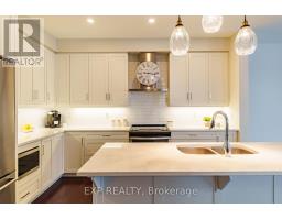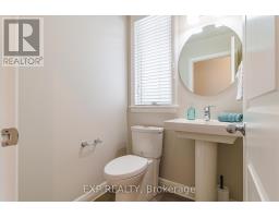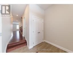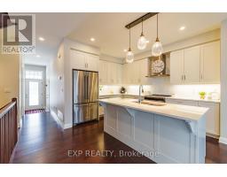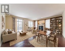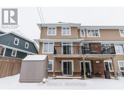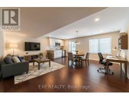 Welcome to this stunning, large end-unit townhome in the highly sought-after community of Stonebridge, offering no front or rear neighbours and a groomed tree view from the back on all three floors. Built by Uniform, this Lawrence model offers approximately 2,265 sq.ft. of beautifully finished living space with thoughtful upgrades throughout.The bright, open-concept main floor features hardwood flooring and a spacious living area anchored by a cozy gas fireplace controlled by a light switch. The gourmet kitchen includes quartz countertops, an extended island, soft-close cabinetry, and four stainless steel appliances, including a fridge with filtered water and automatic ice maker. Patio doors lead to a deck, perfect for entertaining.Upstairs, closets have been upgraded with double hanging, and the primary suite boasts a walk-in closet system and a luxurious ensuite. Large medicine cabinets enhance both bathrooms, and a convenient second-floor laundry adds function.The fully finished walk-out basement includes hardwood floors, a full 4-piece tiled bathroom, and patio doors leading to a private backyard. Outdoors, enjoy stone pathways, a 3-year-old 8'x10' shed, and perennial gardens with peonies, lilacs, magnolia, phlox, irises, hydrangeas, and roses.Additional features include blinds throughout, privacy film on select windows, a full retractable front door screen, Celebright roofline lighting controlled by a phone app, a security system, and all rooms freshly painted. Located minutes from shops, parks, and amenities, this home offers comfort, privacy, and exceptional living. (id:47351)