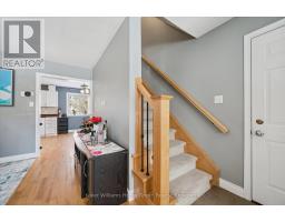 Great 2-storey, 3-bedroom family home in a desirable Fergus neighbourhood. The main floor features a spacious living room and a well-designed eat-in kitchen, both with maple hardwood flooring. The kitchen offers a walkout to a large private deck overlooking mature trees, creating a perfect space for relaxing or entertaining. Upstairs includes three generous bedrooms and 4-piece bathroom, perfect for family living. The fully finished basement provides additional living space with a rec room featuring a cozy gas fireplace, a 3-piece bathroom, laundry area, and walkout access to the rear yard. The private yard offers plenty of space for kids to play and direct access to a walking trail. Conveniently located close to schools, parks, shopping, and all amenities, and within walking distance to downtown Fergus. A great opportunity to own a family home in a welcoming community. (id:47351)