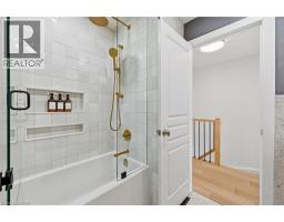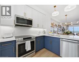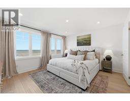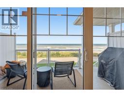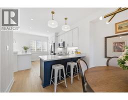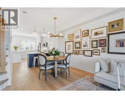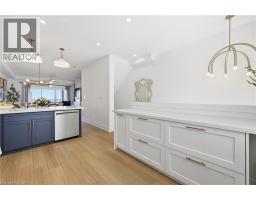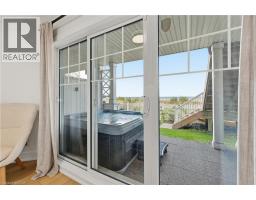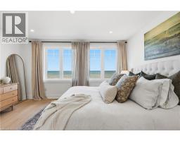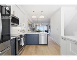 Welcome to lakeside luxury living at its finest. With panoramic views of Lake Ontario from nearly every angle, this sophisticated residence invites you to experience the water as part of your daily life. This 2+1 bedroom, 2-bath townhouse features 1,415 sq. ft. of fully updated living space across three levels, designed to complement its breathtaking waterfront setting. The bright, eat-in kitchen features stainless steel appliances, quartz countertops, two-toned cabinetry, and ample storage—perfect for everyday living or entertaining. The open-concept dining and living area showcases built-in shelving, upgraded lighting, and unobstructed views of Lake Ontario. Step out to your 9' x 15' partially covered balcony complete with a gas BBQ hookup and stairs leading directly to the beach—ideal for summer gatherings and quiet morning coffees. New hardwood stairs with sleek metal banisters lead to the upper level, where you’ll find the beautiful primary bedroom with large windows framing more stunning lake views, a second spacious bedroom, and a tastefully renovated 4-piece bathroom. The versatile lower level offers additional living space for a gym, office, or playroom, featuring a walk-out to the private patio and relaxing hot tub overlooking the lake, plus a modern 3-piece bath and inside entry from the garage. Recent updates include: flooring (2023), kitchen and appliances (2023-2025), lower bath (2025), upper bath (2024), hardwood stairs & metal railings (2025), upgraded lighting (2023), custom living room built-ins (2024), hot tub (2023), deck updates (2025), and roof shingles (2021). Enjoy parking for two cars, an EV charger, and a low condo fee that covers snow removal, gardening, and irrigation. Savour evenings by the fire with neighbours, paddle boarding or kayaking from your backyard, and the soothing sound of waves at night. Just minutes to restaurants, shopping, Confederation GO Station, and downtown Burlington—this is turn-key lakefront living at its best. (id:47351)