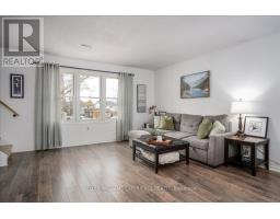 $383 MonthlySun-filled and beautifully updated, this 3-bedroom, 2-bath stacked condo townhome offers stylish, low-maintenance living in a quiet, convenient neighbourhood close to shopping, schools, the GO Train, commuter routes, and the lake. Renovated in 2022 by the current owner, the home features a stunning updated kitchen with quartz countertops and gray shaker cabinets, an undermount double stainless sink, backsplash, stainless steel appliances, and new laminate, vinyl, and broadloom flooring throughout. Both bathrooms have been fully renovated, and the interior has been painted in neutral tones, creating a bright, warm, and modern feel. Large windows bring in abundant natural light from all directions, while each bedroom offers a full-size closet and generous window space. Additional features include in-suite laundry, a gas furnace (2022), central air conditioning (2023), newer vinyl double-hung tilt windows, a new front door with screen door, a spacious deck, dedicated parking, and clear pride of ownership throughout. Spacious and suitable for all ages, this well-maintained property also offers very affordable condo fees ($383.00) that cover all the exterior maintenance and common areas, making for easy, worry-free living. (id:47351)