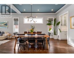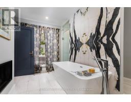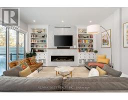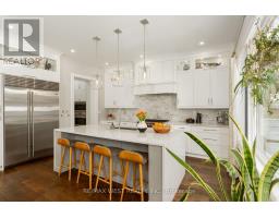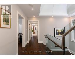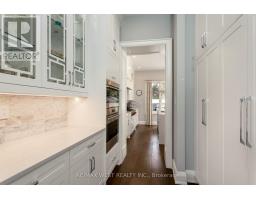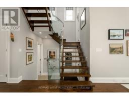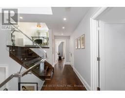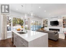 Welcome to 34 Government Rd., a striking custom-built home in the Kingsway. Completed in 2019 w/ over 4,500 sq. ft. of refined living space (approx. 3,400 sq. ft. above grade), finished top to bottom w/ impeccable craftsmanship, blending modern luxury with timeless design. A grand foyer with heated floors and soaring tray ceilings sets an elegant tone. The main level features expansive living and dining areas with wide-plank hardwood floors, oversized thermal windows & built-in speakers. At the heart of the home is a sleek chef's kitchen with premium appliances, including a Sub-Zero fridge, Wolf 6-burner range, wall oven and microwave, Bosch dishwasher, and a waterfall Cambria quartz island with breakfast seating. Dramatic 12-ft folding thermal doors open to a sun-filled backyard, creating a seamless indoor-outdoor lifestyle. Upstairs, the luxurious primary suite boasts a double-sided gas fireplace, expansive windows, built-in speakers, & a custom walk-in closet w/ island storage. The spa-inspired 5-pc ensuite features a steam shower, heated marble floors, freestanding soaker tub, & double vanity. Additional bedrooms on the 2nd flr are generously sized w/ large closets and a shared bathroom w/ a double sink & privacy water closet, while a bright loft/library offers ideal home office space. Second-floor laundry adds convenience. The finished lower level provides exceptional versatility w/ a large recreation area, nanny or in-law suite potential, bathroom with a spacious shower, & a temperature-controlled wine cellar for approximately 490 bottles. Equipped with smart home features-including Nest detectors, smart doorbell, smart switches, security cameras, Google Home controls, & a programmable skylight w/ rain sensor. Exterior highlights include exposed concrete driveways & walkways, a handsome stone façade, glass-railed deck, & a private Muskoka-inspired backyard oasis. Steps to Lambton Kingsway Jr. Middle School, Humber River trails, shops, cafés, & transit access. (id:47351)
