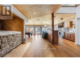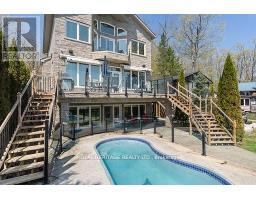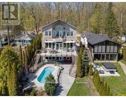 Sometimes Dreams Do Come True! Discover the ultimate lakefront lifestyle on the highly sought-after western shores of Pigeon Lake. This custom-built, year-round masterpiece offers 3 spacious bedrooms and 3 luxurious bathrooms, blending refined elegance with everyday comfort. Step into a grand foyer with double closets, leading into a stunning great room featuring cathedral ceilings, a cozy fireplace, and expansive windows framing breathtaking views of the lake. The gourmet kitchen is truly a chef's dream, complete with a massive island, dual sinks, wine cooler, and panoramic sight lines to the water. Upstairs, the private loft-style primary suite offers a balcony overlooking the lake, a spa-like ensuite, laundry area, fireplace, and dramatic vaulted ceilings a true retreat. The lower level is an entertainer's paradise, featuring a hot tub, sauna, wet bar, and inviting fireplace, with a walkout to a wade-in pool all just steps from your own private sandy beach. Included on the property is a charming bunkie, complete with its own fireplace, 3-piece bathroom, and outdoor shower perfect for weekend guests. Don't miss this rare opportunity to own a one-of-a-kind lakeside home or potential short-term rental income. with exceptional amenities and unforgettable views. (id:47351)