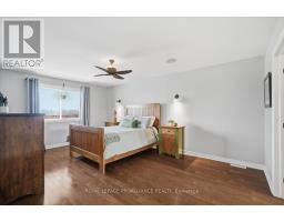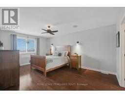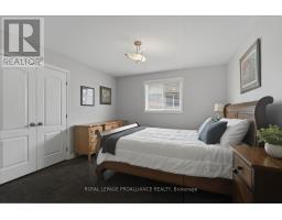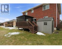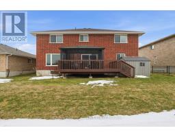 Welcome to this stunning two-storey, all-brick executive home backing onto tranquil green space in a highly sought-after, upscale, family-friendly subdivision. Just minutes from Highway 401 and close to a wide range of amenities, this quality-built Staikos home offers exceptional curb appeal with its charming covered front porch and beautiful exterior.Step into the spacious foyer, where you are greeted by a warm and inviting layout. The foyer flows seamlessly into the formal living and dining rooms, perfect for hosting gatherings, or leads directly into the well-appointed kitchen,featuring abundant cabinetry, a large peninsula, and a bright eating area. The open-concept family room, adjacent to the kitchen, provides a comfortable and airy space for everyday living. Patio doors from the eating area open onto a generous deck overlooking the private backyard, ideal for outdoor dining or relaxation. Large windows throughout the main level fill the home with natural light, highlighting the hardwood and ceramic flooring. A beautiful stair case leads to the second level, where you'll find the generous primary suite, complete with a walk-in closet and a stunning en-suite showcasing a glass and tile shower. Three additional spacious bedrooms and a well-appointed 4-piece main bathroom provide plenty of room for family or guests. The convenience of second-level laundry completes this floor. The fully finished lower level offers exceptional additional living space, including a large recreation room, two sizeable bedrooms, a full bathroom, and ample storage-ideal for extended family, teens, or guests. Additional features include a two-car garage with inside entry to the mudroom, perfect for busy family life.The subdivision itself offers wonderful lifestyle perks, including a large community park and scenic walking trails for residents to enjoy. This impressive home offers comfort, space, and style in a premier location-everything your family has been looking for! (id:47351)