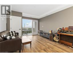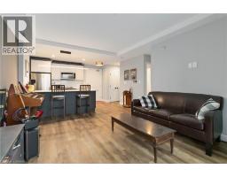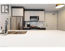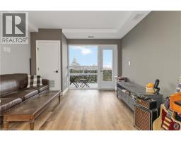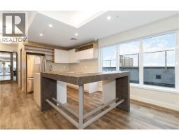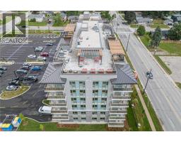 One of the most sought after condominium developments in Brantford with truly amazing amenities! Fourth floor for this premium one bedroom one bath apartment. Welcome to The Landing offering a wonderful roof top patio equipt with outdoor lounging, shared BBQs and an indoor gathering area with kitchen, sitting areas and pool table room with a TV! This building aslo boasts a fully equipt fitness gym, speakeasy for group parties and quiet library. Located right off HWY 403 this location is perfectly situated close to great schools, parks, shopping and restaurants. Quality finishes through out including vinyl plank luxury flooring an open concept great room with modern kitchen having a peninsula island with seating and b-in s.s dishwasher w/s.s appliances included. Walk out to your private covered balcony with extraordinary views. Large principle bedroom with walk in closet. Convenient in-suite laundry closet. Upgraded builders package. The tenant will be vacating on April 30th 2026. (id:47351)
