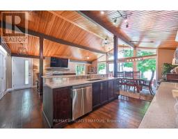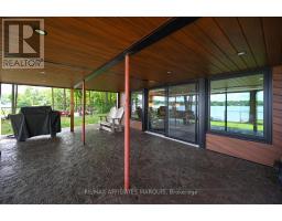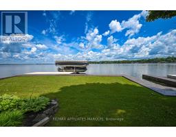 Welcome to your turnkey waterfront retreat on the breathtaking shores of Lower Rideau Lake! This impeccably maintained and thoughtfully updated home is nestled in one of Eastern Ontario's most sought-after waterfront communities, offering miles of lock-free boating on both Lower and Big Rideau Lakes. Cruise to picturesque destinations like Rideau Ferry and Portland to enjoy lakeside dining and vibrant waterfront culture. Set on a beautifully landscaped lot with stunning views down the lake, this property features a premium seawall with stamped concrete detailing, a new dock, boat lift, and a private boat slip ideal for the avid boater or lakefront enthusiast. Enjoy morning coffee or evening cocktails from your upper deck, finished with durable Duradek flooring and sleek InvisiRail glass railings for unobstructed lake views. Inside, the open-concept main floor has been tastefully updated with engineered hardwood flooring throughout. The modern kitchen flows seamlessly into the dining and living areas, creating a bright and airy atmosphere with panoramic lake views. Two spacious bedrooms are accompanied by two stylishly renovated full bathrooms, offering comfort and function for family and guests alike. The lower level offers even more living space with a walk-out family room complete with a cozy gas fireplace, a two-piece bath, and generous storage/utility areas. Step outside to a covered, stamped concrete patio perfect for entertaining or relaxing in the shade while taking in the peaceful lakefront setting. A detached two-car garage provides ample parking and could easily double as a home gym or workshop. The partially fenced yard offers space for kids and pets to play safely. Whether you're looking for a full-time residence or a four-season getaway, this exceptional waterfront home combines modern comfort, natural beauty, and recreational lifestyle in one unbeatable package. Don't miss your chance to own a slice of Rideau paradise! (id:47351)