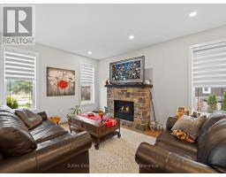 Stunning custom built home on a quiet cul-de-sac. Built in 2021, this beautifully designed brick and stone home offers timeless curb appeal and upgraded features throughout. Located just steps away from the library, park and fire hall, this property is ideal for families or anyone seeking a quiet yet connected lifestyle. Step inside to an open-concept layout with high ceilings, a cozy gas fireplace in the living room and bright dining area. The spacious kitchen includes stainless steel appliances, a peninsula with seating and ample storage- perfect for everyday living and entertaining. A convenient half bath serves guests, while the main floor also has a large primary bedroom with patio doors to the impressive 12' x 40' back deck, a walk in closet and a private 3 piece ensuite. Main floor laundry adds practicality to your daily routine. The fully finished basement offers even more living space with a generous rec room, an additional bedroom, a 4 piece bathroom and a bonus room ideal for a home office or potential 3rd bedroom. Enjoy the convenience of a heater double car garage, a concrete driveway and low maintenance landscaping. This move-in-ready home checks all the boxes, don't miss out! (id:47351)