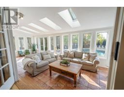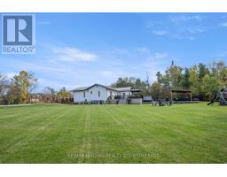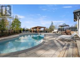 Welcome to this exceptional country estate, set on over 8 acres of picturesque, gorgeously landscaped land. From the moment you arrive the property will impress you, with its long winding driveway, which passes by a beautiful natural pond with a fountain, a fabulous resort-like back yard with multiple sitting areas, an inground pool, & a hot tub. Step inside to an inviting open concept main level, featuring a gorgeous chef-inspired kitchen with soaring high ceilings, premium finishes, and a seamless flow into the bright living & dining areas. A wonderful sunroom with heated floors offers year round comfort, & is the perfect place to unwind while enjoying panoramic views of the property. The main level boasts four large bdrms, including two luxurious suites, each with an ensuite bthrm & walk-in closet-ideal for family living, or hosting in style. There's also a 4 pc bath & a 3 pc shared bath on the main level, along with a convenient laundry room off the garage. The lower level is designed for versatility & entertainment, offering a family room, a 5th bedroom, & an in-law suite, that's perfect for your extended family to have their own space. It features a large bdrm, an updated bthrm with stackable laundry, a spacious kitchen/living/dining area, & a separate walk-up to the side yard. There is a door from the suite to the rest of the basement, so you could use the entire space for your own immediate family as well. Just a few of the upgrades include: hot tub '22, metal roof '22, stucco '22, approx. 2 acres of irrigation system, landscape lighting, & underground dog fence, many new windows, kitchen, flooring, & baths. Outdoors, the possibilities are endless, whether enjoying the heated pool (new liner '22), entertaining on the expansive patios & deck, simply soaking in the peace & beauty of country living, or exploring the acres of woods & skating on the pond in winter. Truly a one-of-a-kind property offering space, luxury, & unmatched tranquility! Luxury Certified (id:47351)