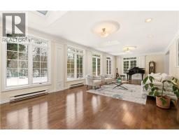 A rare opportunity on Shoreacres Road, one of South Burlington’s most prestigious, tree-lined streets. Set on a spectacular ravine lot, this 3739 sq ft family home offers timeless elegance, exceptional space, and a backyard that feels like a private resort. The classic centre hall layout welcomes you with generously proportioned principal rooms, separate living and dining areas, and an open eat-in kitchen perfectly suited for everyday living and entertaining, with room to evolve with your style. The expansive sun-filled solarium, with floor-to-ceiling windows and three skylights, frames tranquil views of the lush, private grounds beyond. Step outside to a breathtaking backyard oasis surrounded by mature trees and overlooking Shoreacres Creek. Spend summer days poolside in the saltwater in-ground pool, entertain on the flagstone patio, or simply relax amid manicured gardens; it is outdoor living at its finest. Inside, the vaulted ceiling great room, with library paneling and gas fireplace, is the heart of the home, perfect for cozy evenings and family gatherings. A main-floor office with custom built ins offers an ideal work-from-home retreat. There is also a generous mudroom with separate entry. Upstairs are four spacious bedrooms, including a primary complete with a spa-like ensuite. The lower level adds an additional 795 sq ft of finished living space and features a recreation room, full bath, laundry, abundant storage, and separate stair access from the garage. Perfectly located just steps to Lake Ontario, Paletta Park, and scenic waterfront trails, and within the highly rated JT Tuck and Nelson school catchment. Minutes to shops, restaurants, GO Transit, and the QEW offering an exceptional lifestyle for commuters and nature lovers alike. (id:47351)