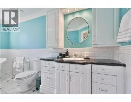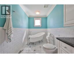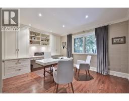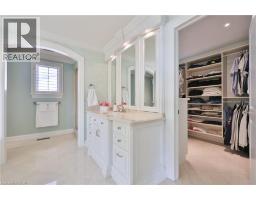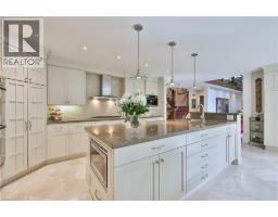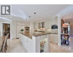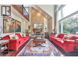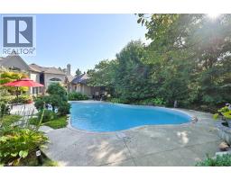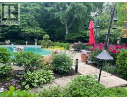 Set on a breathtaking 70’x209’ private lot in Burlington’s prestigious Roseland community, this stately stone and stucco home offers over 5,850 sq ft of finely curated living space across three levels. Showcasing timeless elegance and old-world craftsmanship, this home impresses with custom millwork, plaster crown mouldings, custom built-ins and rich hardwood, limestone and porcelain floors. Step into a grand foyer that leads to elegant formal dining and living rooms with a gas fireplace then discover the heart of the home: a chef’s dream kitchen featuring a sprawling island, top-of-the-line appliances, walk-in pantry, sunlit breakfast area with a walk out to the stunning gardens. Adjoining the kitchen is the great room with a two-storey ceiling, gas fireplace and a wall of windows framing your own backyard paradise. The main level also features a home office, stylish powder room and custom mudroom with access to an oversized double garage with epoxy floors. Upstairs, unwind in your primary retreat with vaulted ceilings, sunlit walk-in closet and luxurious 4-piece spa-inspired ensuite with steam shower. A loft-style library with built-in bookcases overlooks the great room and three more spacious bedrooms include a private guest suite, a shared 4-piece bath and convenient upper-level laundry. The lower level features a home theatre room, hobby room, second laundry, fitness studio with beverage centre and 3-piece bath and storage. Outside, the resort-style backyard is an entertainer’s dream featuring a 20’x40’ saltwater gunite pool (‘19), stucco pool house (‘15) with kitchenette, change room and garden storage, a pergola-covered stone patio (’19) with gas fireplace, dramatic landscape lighting and tranquil stone water feature, surrounded by stunning, lush, mature gardens. Just steps to top schools, parks, downtown and the lake, this distinguished home with its meticulous attention to detail exudes warmth and comfort and will appeal to the most discerning buyer. (id:47351)