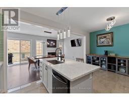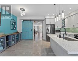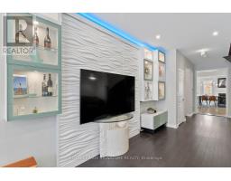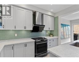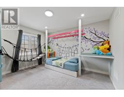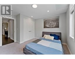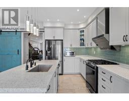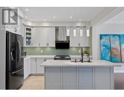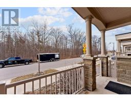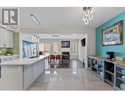 Stunning stone and brick 4-Bedroom, 2.5-Bathroom freehold townhouse located in the sought-after North Oakville neighbourhood. Facing a lush forest, this 2-storey home offers privacy, beautiful natural views, and plenty of street parking for multiple vehicles. With over 2,339 sq.ft of well designed living space and modern finishes, this home has been well-loved and upgraded from top to bottom. Main floor features 9-ft ceilings and a bright open-concept layout, ideal for family living and entertaining. Living room showcases a custom wall panel with built-in display shelves, adding warmth and character. In the kitchen, you'll find quartz countertops, black stainless-steel appliances, gas stove, centre island with breakfast bar, along with plenty of cabinetry. A sliding barn door offers separation from the living area when you want added privacy. The dining area is spacious and highlighted by a natural gas fireplace, with a walk-out to the deck complete with a gas line for BBQs. Upstairs, all four bedrooms are generously sized. The 18'x13' primary bedroom features a custom walk-in closet and 4-piece ensuite with both shower and soaking tub. The 3rd bedroom is a child's dream, with an indoor playground that can stay or be removed. The unfinished basement is a blank canvas, ready for a rec room or gym, and includes a cold room for more storage. Thoughtful upgrades throughout include stone vanities in every bathroom, kitchen hardware, lighting, faucets, stained oak stairs, and 240-volt outlet for EV charging. Location couldn't be more convenient - steps to parks and school bus route serving multiple schools. Highways and 407 are just minutes away, with supermarkets, shopping, trails, hospitals, and the new Sixteen Mile Community Centre & Library, a 65,000-sq.ft facility with aquatic facilities, fitness centre, indoor track, gymnasium, and community spaces. Don't miss your chance to move into a warm, welcoming home in one of North Oakville's most sought-after communities. (id:47351)