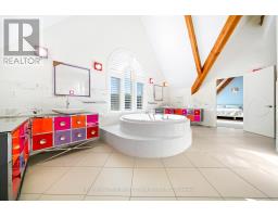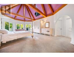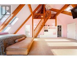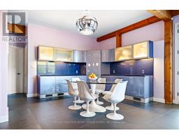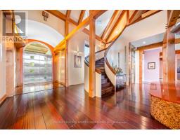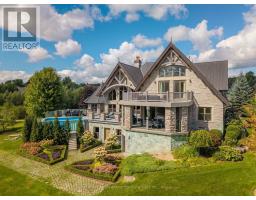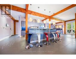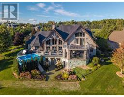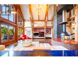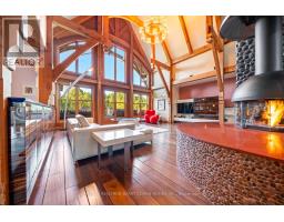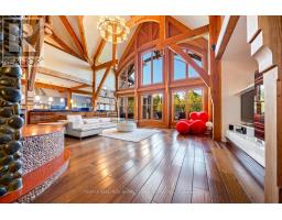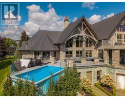 This One-Of-A-Kind Residence Was Custom Built By The Owners To Showcase Their Unique Vision, Blending The Chic Allure Of High-End Chalet Design With The Timeless Strength Of Canadian Timber Frame Craftsmanship. A Striking Copper Roof Crowns The Home, While A Dramatic Great Room With Soaring 35-Foot West-Facing Windows And A Circular Gas Fireplace Sets The Tone For Inspired Living. Overlooking This Impressive Space Is A Designer Snaidero Kitchen With Seating For 10, Walkout To The Wraparound Deck, And An Infinity Pool Bordered By Glass Walls. The Main Floor Is Anchored By A Private Office Or Dining Room, And A Bauhaus-Inspired Powder Room With Tile Detailing. The Primary Suite Serves As A True Sanctuary, Featuring Cathedral-Like Beamed Ceilings, Bespoke Poliform His-And-Hers Walk-In Closets, A Luxurious Spa-Like 5-Piece Ensuite. Upstairs, Two Expansive Bedroom Suites With 25-Foot Ceilings Each Enjoy Private Walk-In Closets And Share A Large 6-Piece Ensuite With Loft Areas. The Walk-Out Lower Level Offers A Family Room, Acoustic Music Studio, Private Hair Salon, And Powder Room, Along With Additional Bedrooms For Family Or Guests. Designed With Both Scale And Intimacy In Mind, This Home Balances Contemporary Elegance With Natural Warmth An Irreplaceable Retreat Surrounded By Unmatched Privacy. (id:47351)