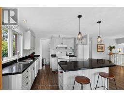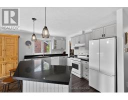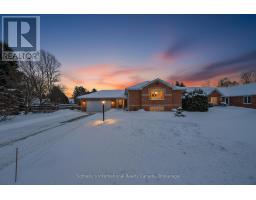 Beautiful 2+2 bedroom raised bunglow on a quiet dead end street in downtown Thornbury, steps to the waterfront and downtown shops and restaurants. This home has been meticulously cared for and updated since the current owner took possession and features an open plan main level with refaced kitchen, new quartz counters and new hardware and a gas f/p in living room. The primary features a new bathroom with tiled shower and a walk in closet. There is also a guest bedroom and 2 piece powder room. The lower level has 2 good sized guest bedrooms, with updated 4 piece bathroom, a laundry room and large rec. room. The garage has been drywalled, insulated and an epoxy floor installed along with expansive steel cabinetry. Other upgrades include all new flooring, paint, new rear cement patio with hot tub and shed, new furnace 2019, new a/c 2022, new dishwasher 2026. (id:47351)