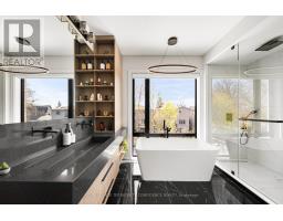 Prepare to be dazzled. Welcome to 35 Nipigon Avenue, an apex of design with gorgeous interior finishings throughout, and an extensive list of home features. Complete with a convenient 4-stop elevator, breathtaking outdoor in-ground swimming pool, heated driveway, 9" wide plank hardwood floors, precast front facade, steam humidifier & HRV system, composite deck w/ glass railing, interlocked backyard, and much, much more. This modern jewel immediately impresses, beginning at the 10' tall, mahogany front door -- and through to the welcoming front foyer, with a soaring 13' ceiling, heated floors, and spacious double closet. The suave living room is the perfect gathering space, w/ a cozy gas fireplace, B/I speakers, warm cove lighting & a beautiful bay window; and the dining room w/ a gorgeous floor-to-ceiling wine display. Continue on to the sleek chef's kitchen that comes fully-equipped with luxurious B/I appliances, a large pantry/servery, spacious area, island w/ waterfall countertops, B/I speakers, and sliding door walk-out to the deck. The grand family room features another charming fireplace, B/I shelves & speakers, and an unobstructed view of the backyard. And, the stylish main-level office provides a peaceful, private working space. Upstairs, 4 bedrooms grace the second floor -- each one complete with its own ensuite. The primary room is a massive private retreat, that features a sublime view, B/I speakers, large walk-in closet w/ a skylight, and a sparkling 6 piece ensuite with heated floors, integrated double sink w/ wall mount faucets, smart toilet & freestanding tub. Journey on downstairs to the finished basement w/ heated floors throughout -- with a highly convenient mudroom, w/ side entry & pet wash. The rec room is an entertainer's haven, with a B/I wet bar area w/ drink cooler, dishwasher & island, B/I speakers, fireplace, and walk-up! Nanny's room w/ ensuite offers even more living space. High luxury begins here -- experience this immaculate home today (id:47351)