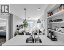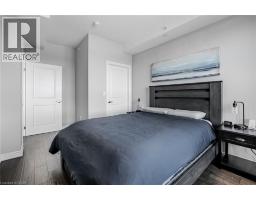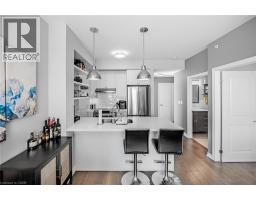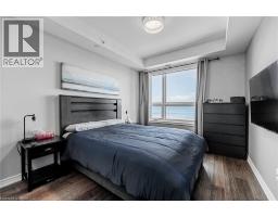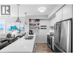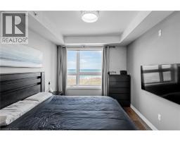 $774.51 MonthlyWake up to breathtaking, unobstructed views of Lake Ontario right from your living room, primary bedroom, and private balcony! Welcome to Waterfront Trails - one of Stoney Creek's most sought-after boutique lakeside communities. This stunning 2-bedroom corner unit is bright, modern, and move-in ready, with natural light pouring in throughout the day. The open-concept layout features beautiful hand-scraped hardwood flooring, a sleek white kitchen with stainless steel appliances, quartz countertops, upgraded pendant lighting, and a breakfast bar island - perfect for morning coffee or entertaining guests. Both bedrooms are generously sized, with the primary bedroom capturing those gorgeous lake and Toronto skyline views. The updated 4-piece bathroom is clean and contemporary. Step outside to your private balcony and let the sound of the water do the rest. This building is heated and cooled by geothermal - while fees are listed as excluding heat, A/C & hydro, there are no gas or traditional energy costs; only minimal hydro for the air handling unit. Building amenities include a spectacular rooftop terrace with panoramic lake and escarpment views, a well-equipped fitness centre, party room, bike storage, and ample visitor parking. Walking trails and beach access are right at your doorstep, with quick and easy access to the QEW and all local amenities. Don't miss this one! (id:47351)