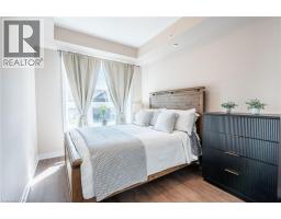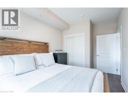 Discover boutique lakeside living in this stylish one-bedroom condo at the Waterfront Trails in Stoney Creek. Located in a charming four-storey building right on the lake, this freshly painted unit features newer wide plank flooring, a modern kitchen with stainless steel appliances and a breakfast bar. This unit features in-suite laundry and sliding doors that open to a private balcony. Enjoy the convenience of one owned underground parking space and one owned locker along with building amenities including a rooftop terrace with stunning lake views, an exercise room, bicycle storage and ample visitor parking! With a walking trail at your doorstep, easy beach access, quick access to the QEW and local amenities, this condo is a perfect opportunity for first-time buyers or investors seeking a turn-key property in a prime waterfront location. Don’t be TOO LATE*! *REG TM. RSA. (id:47351)