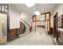 Prime opportunity to launch your business in a piece of Londons history! This beautifully restored circa-1920 heritage bank building offers 6,182 SF above grade. Ideally situated in the heart of downtown London just steps from Budweiser Gardens and Covent Garden Market, the property enjoys exceptional pedestrian and event traffic. Interior highlights include elegant plaster vaulted ceilings, all-new LED lighting throughout the main and upper levels, and a 14 ft x 14 ft open mezzanine landing that overlooks the grand main area. The layout features a fully refurbished 50' x 12' kitchen at the rear, two spacious front offices, two main floor washrooms, and three large offices on the upper floor, including a grand presidential office. The building also includes three operational vaults and dual entrances from both King and Richmond Streets. Private rear parking for up to eight vehicles is included. Zoned DA1, the property allows for a wide range of uses including assembly halls, art galleries, commercial recreation, financial institutions, museums, studios, restaurants, and more. Offered at $13/SF net plus $6/SF additional rent, totalling $9,788/month plus HST and utilities. An additional 4,300 SF lower level is also available for lease if desired, with rates to be negotiated. (id:47351)