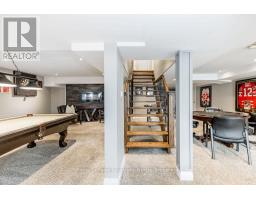 A SHORT WALK TO THE WATER. Discover this all brick, 4 bedroom, 3 bathroom, family home with an additional main floor office space, ideally located in a sought-after, family-friendly area just steps from water access + the amenities of Friday harbor located next door. Situated on a beautifully landscaped lot just under half an acre, this property offers exceptional outdoor and indoor living. The main floor welcomes you with lots of natural light offering many windows and an inviting layout. The custom kitchen offers granite countertops, stainless appliances, gas stove and convenient side door to a covered porch perfect for barbequing. An elegant separate dining room with hardwood, is perfect for everyday living and hosting family holidays. The cozy sunken living room is open to the kitchen. Upstairs, the large primary bedroom is a true retreat, complete with an updated ensuite (featured in a magazine) + a private open balcony overlooking the lush backyard. Three additional bedrooms and a second updated bathroom offer the space any family dreams of. As you enter the lower level, the hardwood staircase leads you to the professionally designed basement perfect for hosting. Featuring a dry bar, custom fireplace, pool table, large TV to watch the game + plenty of space for the guys poker night. Step outside to enjoy the wraparound deck, a spacious patio perfect for entertaining + a custom designed front walkway. Additional highlights include a convenient 2-car garage with inside entry to main floor laundry, newer garage doors, fully fenced yard with rod iron fence, 2 sheds, driveway re-done approx 2014 with armor stone features, updated lighting and much more. This home is a rare find, so don't miss out. Above grade square footage: 2700 Below grade square footage: 1110. (id:47351)