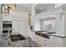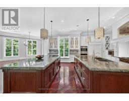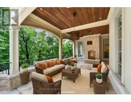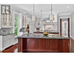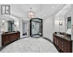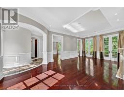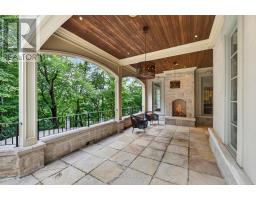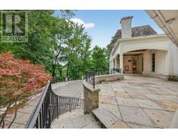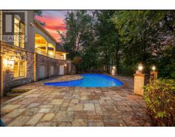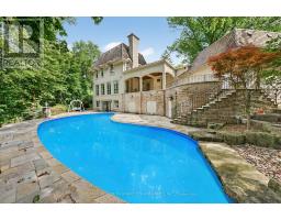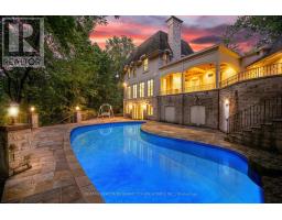 Backs Onto Ravine! Perched gracefully at the highest point of Hoggs Hollow, this French Château inspired masterpiece sits on a spectacular 239.08 x 207.81 ft ravine lot (approx. 1.14 acres). Designed by Dee Dee Taylor Hannah and built by award-winning builder Michael Rossini, this timeless stone estate offers over 10,000 sq.ft. of luxurious living space, blending European elegance with modern comfort. The homes distinctive curved and symmetrical design showcases architectural artistry rarely seen today. Featuring 4 bedrooms with ensuites, 9 washrooms, and a 3-car garage with a circular driveway accommodating up to 15 cars, all principal rooms face west, overlooking the serene ravine. A grand marble foyer, curved hallways, and custom millwork opens to elegant living and dining rooms that walk out to the ravine and garden. Two libraries on main floor, five fireplaces, built-in speakers, 10-ft ceilings, and hardwood floors throughout. The gourmet kitchen with double granite islands and an open-concept family room with motorized curtains creates a warm and inviting space for entertaining.Step out to a 700 sq.ft. patio with outdoor fireplace and panoramic ravine views. The primary suite features a lavish 9-piece ensuite, his & her walk-in closets, and heated bathroom floors. The walk-out lower level wth heated floors includes a home theatre, wine cellar, sauna, wet bar, nanny/guest ensuite, and a recreation room with fireplace opening directly to the backyard oasis.The heated concrete pool with cascading waterfall, framed by mature trees, creates a private, resort-like retreat. A rare offering combining elegance, privacy, and tranquility, just moments from the Granite Club, top private schools (Crescent, TFS, Havergal, UCC, BSS), fine dining, and Rosedale & Don Valley Golf Clubs.A true statement of taste, craftsmanship, and enduring luxury in one of Torontos most prestigious enclaves. (id:47351)