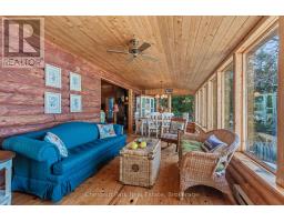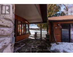 Discover a truly unique waterfront retreat in the charming hamlet of Lion's Head. This exceptional property combines privacy, character, and convenience, all set along a year-round paved road with direct access to the famed Bruce Trail and stunning Niagara Escarpment vistas. Boasting approximately 93 feet of immaculate shoreline on the clear waters of Georgian Bay, the property features a beautifully crafted Frontier log home, blending rustic elegance with classic stone accents. A spacious garage and versatile workshop, along with a cozy bunkhouse, offer ample space for guests, hobbies, or storage. Adding to the serene setting, a natural spring-fed stream winds through the grounds, complete with gentle waterfalls that create a tranquil, storybook atmosphere. From the backyard, take in sweeping views of Georgian Bay and the escarpment-a perfect backdrop for relaxation or entertaining. Designed for year-round enjoyment, the home is serviced by a drilled well and septic and features a wood-burning stove that enhances its warm, inviting cottage feel. Just a short walk away, you'll find the harbour, sandy beach, marina, grocery store, hospital, bank, library, and local dining options. This rare Lion's Head property offers a one-of-a-kind opportunity to embrace the Bruce Peninsula lifestyle in a waterfront setting unlike any other. (id:47351)